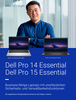 Die Dell Pro Essential Serie, bestehend aus Dell Pro 14 Essential und Dell Pro 15 Essential, bietet geschäftstaugliche Laptops für kleine und mittelständische Unternehmen, die Zuverlässigkeit, Sicherheit und einfache Verwaltung zu einem erschwinglichen Preis suchen. Jetzt herunterladen, um mehr zu erfahren.